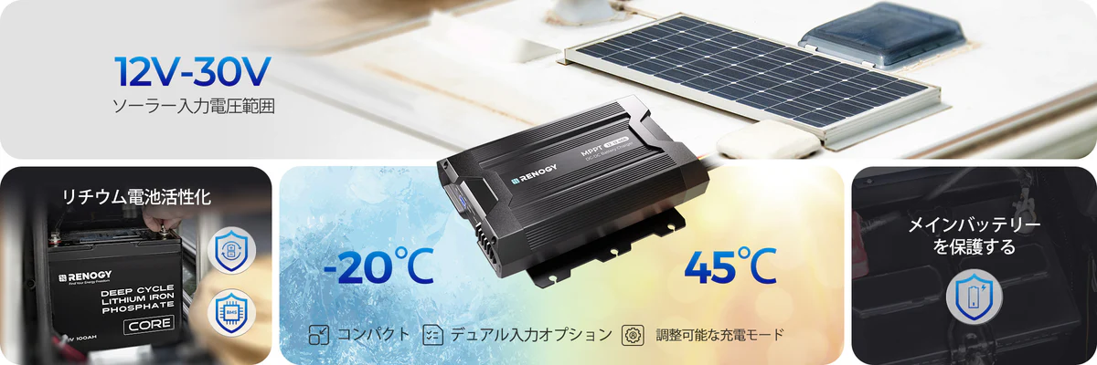 ソーラーとDC入力をスムーズに切り替え、効率的で信頼性の高い走行充電を実現します。信頼性と卓越した性能を常にお届けします。